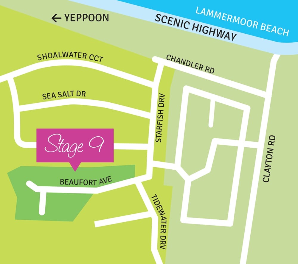 Simply take the Scenic Highway to the end of Lammermoor Beach turn right at the Clayton Road roundabout and then turn right into Chandler Road. The entrance to The Shoals is a left turn at the Starfish Drive roundabout, you can’t miss it.